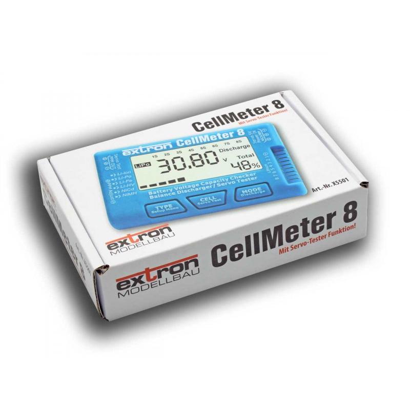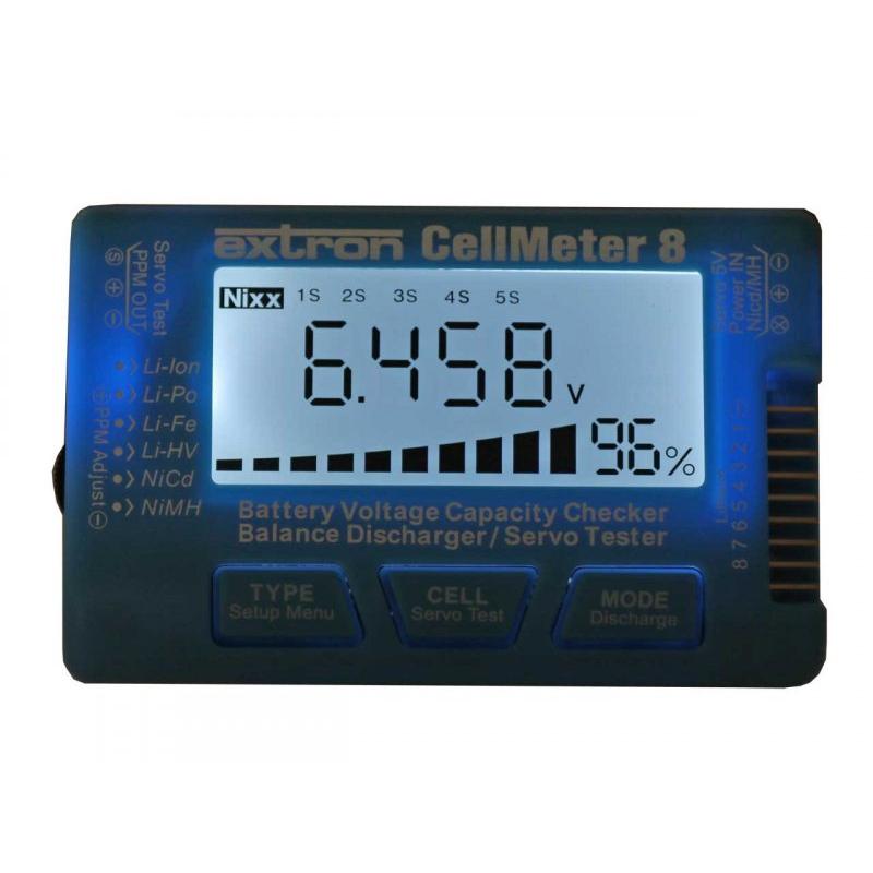 Das Cell Meter 8 ist ein Multifunktions-Messgerät, mit dem die Kapazität Ihrer Akkus sowie die Einzelzellenspannung messen können. Darüberhinaus kann das Cell Meter 8 Ihre Lithium Akkus balancieren und Ihre Servos testen. Nettes Feature am Rande: Das Gerät verfügt über eine sehr schöne, helle Hintergrundbeleuchtung.