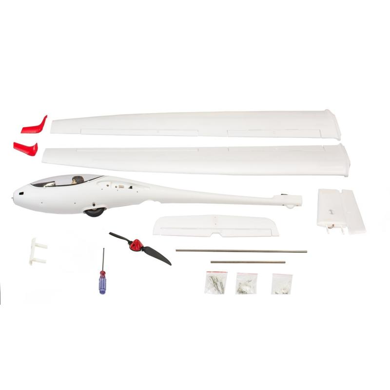 Die Arretierung der Flächen am Rumpf ist nun nicht mehr umständlich verschraubt, sondern erfolgt mittels Schnellschnappverschluss und auch ein Lande-Rad wurde in den Rumpf integriert. Der Rumpf besteht aus stabilem Kunststoff. Die Tragflächen und Leitwerke bestehen aus Formschaum